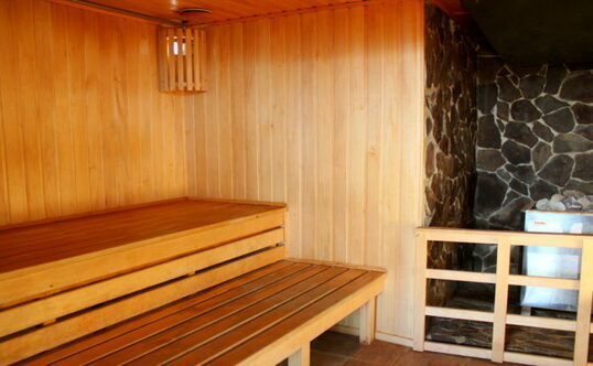 Традиционное сухое тепло. Максимальная температура 100°С при влажности 10%. Процедуры в такой бане в большей мере тонизируют функции сердечно-сосудистой и дыхательной систем, положительно влияют на биохимический состав крови, быстро помогает восстановится после физических нагрузок.