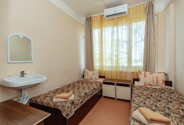Номера площадью от 40 кв.м. с отдельным входом и террасой, оборудованной тентом, шезлонгами и столиком. В 25 метрах до пляжа и шикарным видом на море. В номерах: гостиная, мягкая мебель, телевизор, холодильник, спальни, ванная комната. Уборка номера производится ежедневно, банные полотенца меняются по требованию.
